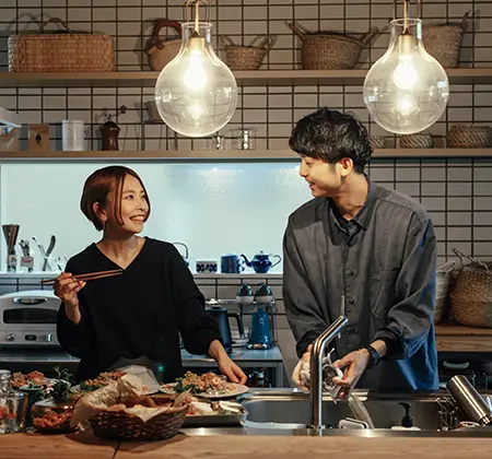 お気に入りのキッチンで料理を作り、大切に育てた植物を眺める。そんな自分たちらしい時間を心から楽しんでいます。夫婦でお酒を飲みながら語らうセカンドリビングや、映画や音楽を愉しむシアタールームなど、私たちのこだわりを余すことなく形にできました。どこを見渡しても「好き」に囲まれた、毎日が愛おしくなる我が家です。