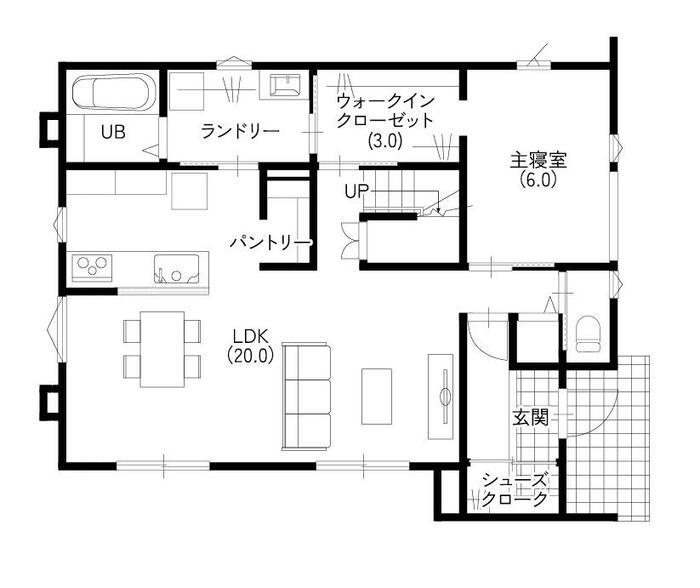 ■リビング・ダイニング・キッチンがゆるやかに区切られるL字型のLDK。