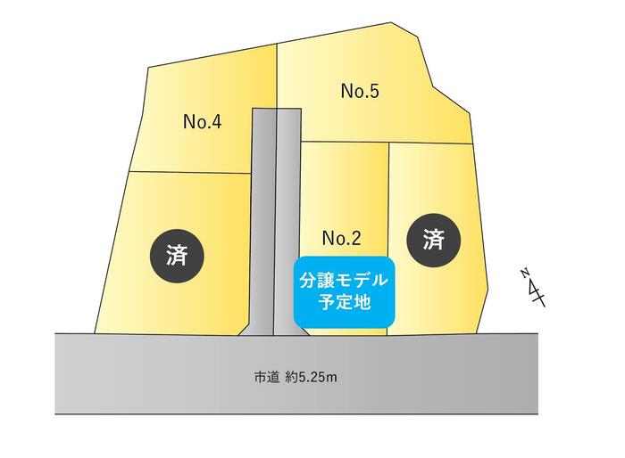 その他 | ・設備:公営水道・公共下水・プロパン・東北電力 ・仲介手数料/販売価格×3%+消費税 ・No.4の土地面積302.77㎡(91.58坪)のうち、85.56㎡(25.88坪)は通路部分となります。 ・No.5の土地面積350.18㎡(105.92坪)のうち、84.81㎡(25.65坪)は通路部分となります。 ・通路部分は地役権(通行)を設定予定 |