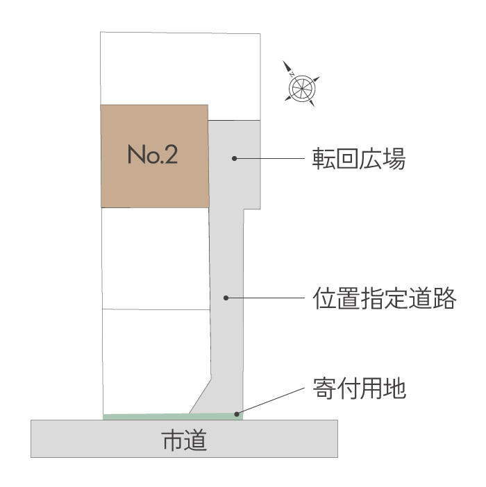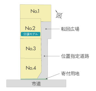 | 道路 | 団地内位置指定(私道)4.0m・南(市道)6.3m |