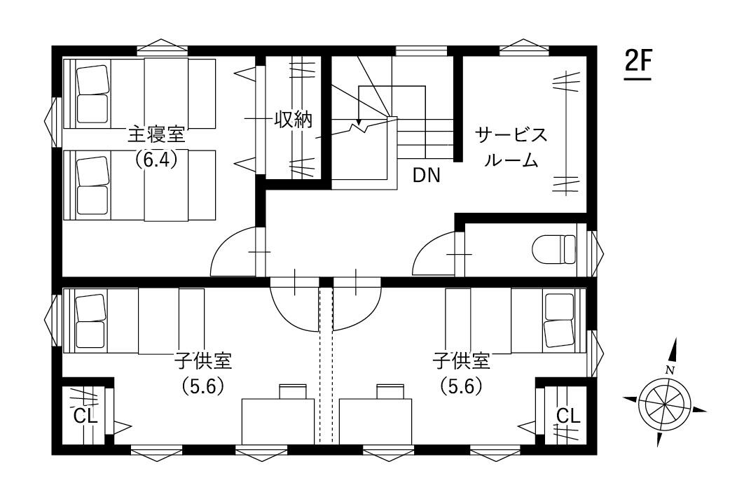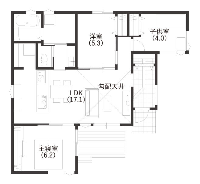建物面積 3LDK+サービスルーム 96.00㎡(29.04坪) - #19帖の広々LDK