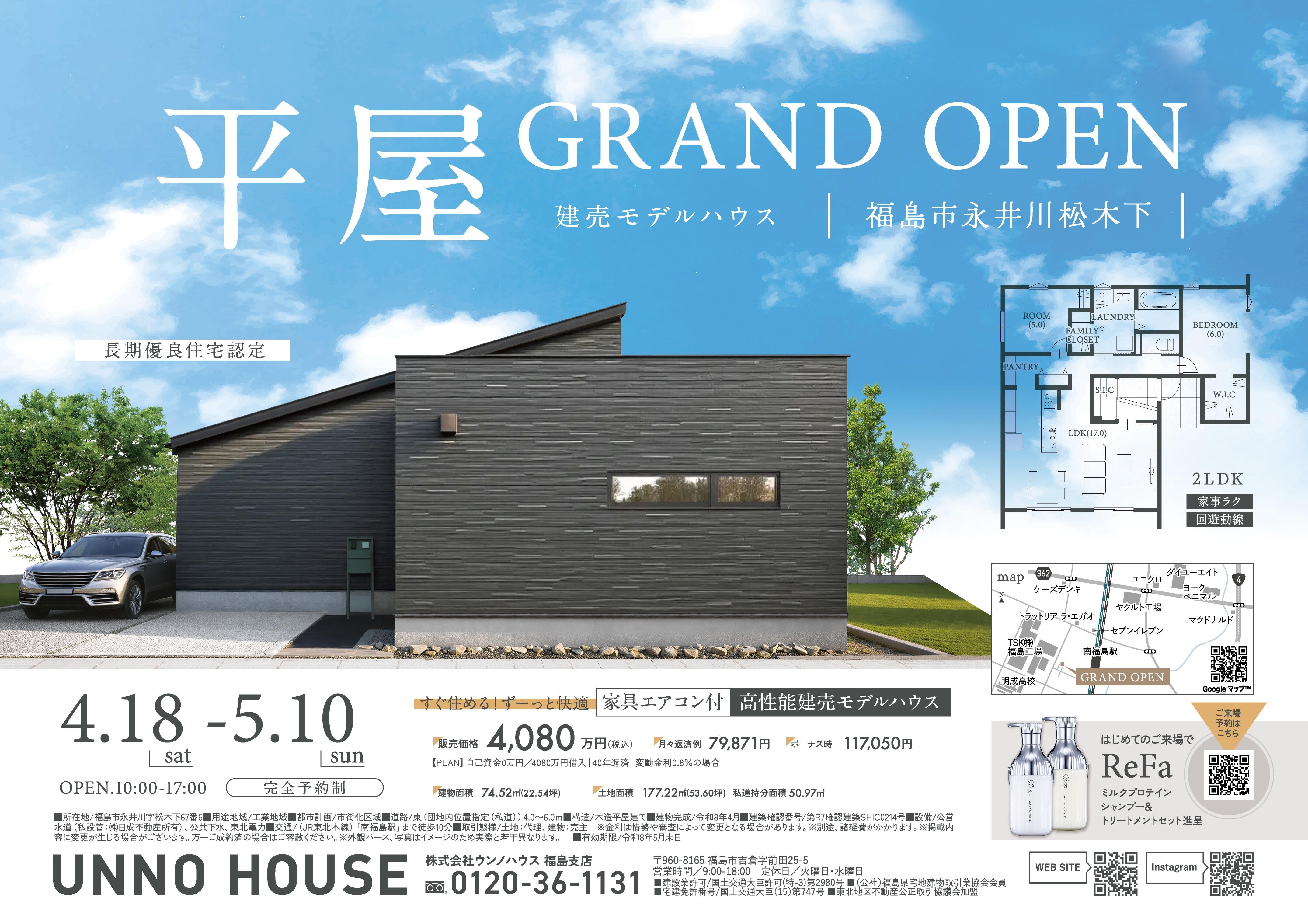 永井川モデルハウス GRAND OPEN#GRAND OPEN #平屋 #建て替え