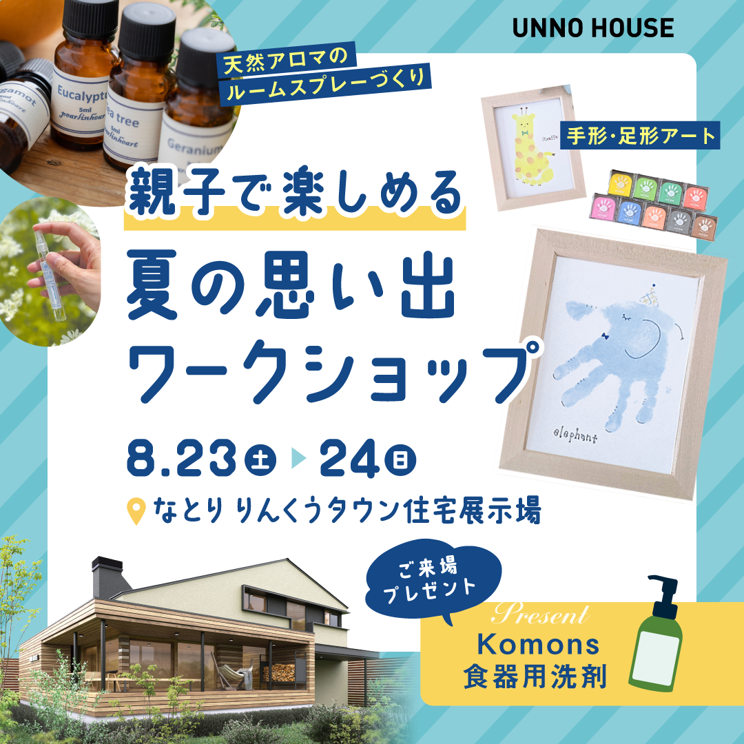 ウンノハウスりんくう展示場にて、8月23日・24日の二日間限定で特別ワークショップを開催!