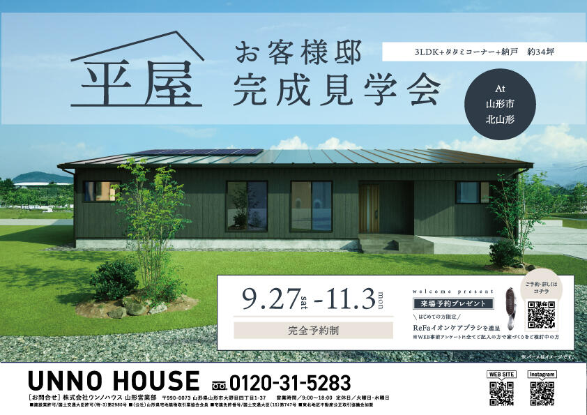 山形市北山形 お客様邸見学会9月27日(土)~11月3日(月祝)