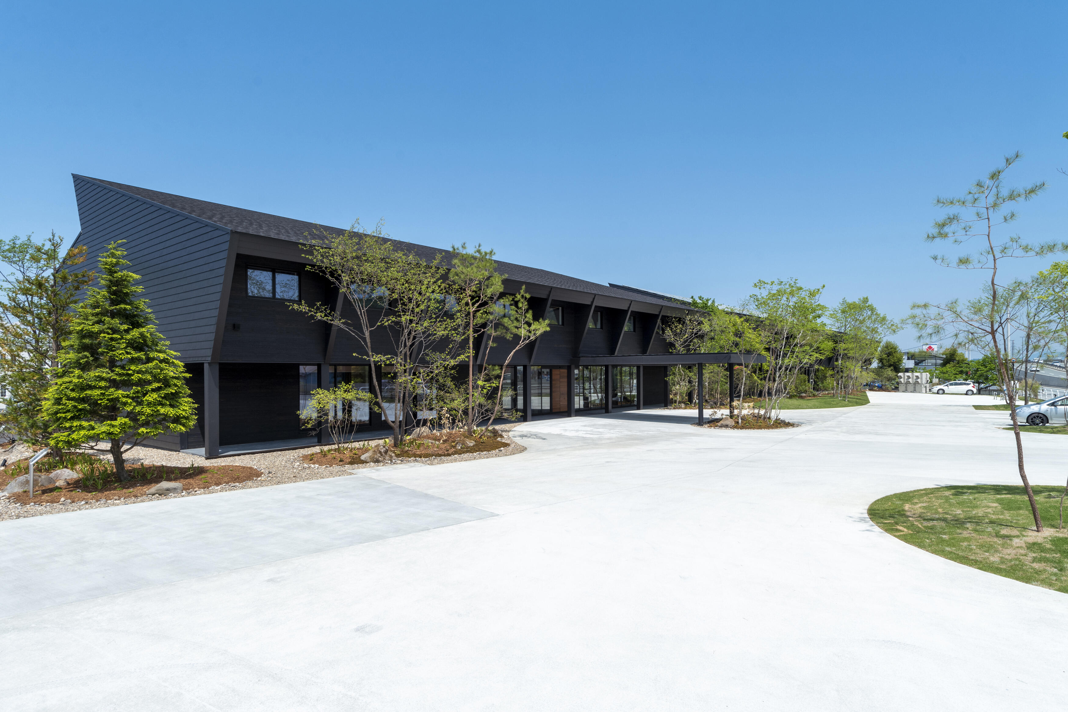 多くの樹木に囲まれた本社屋。