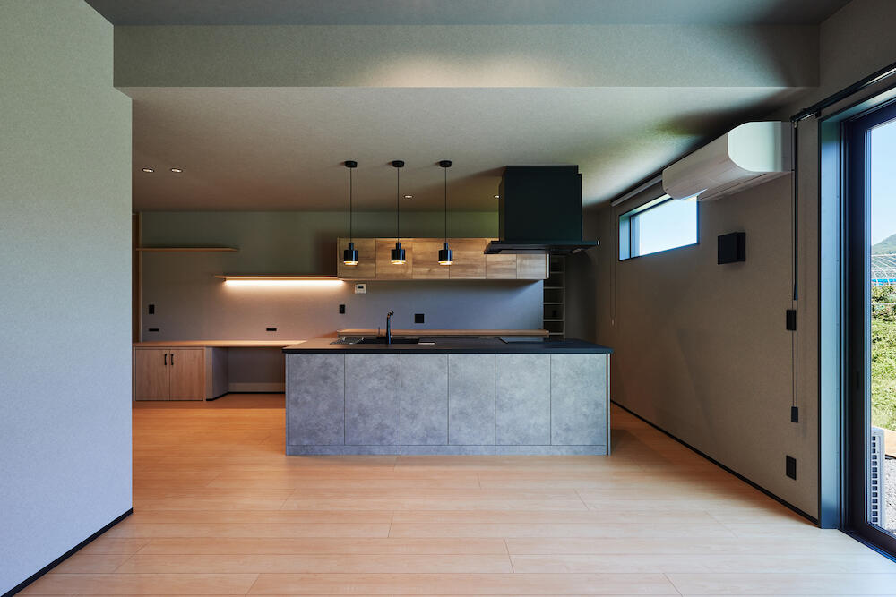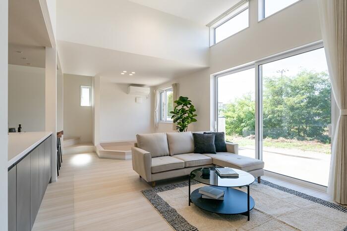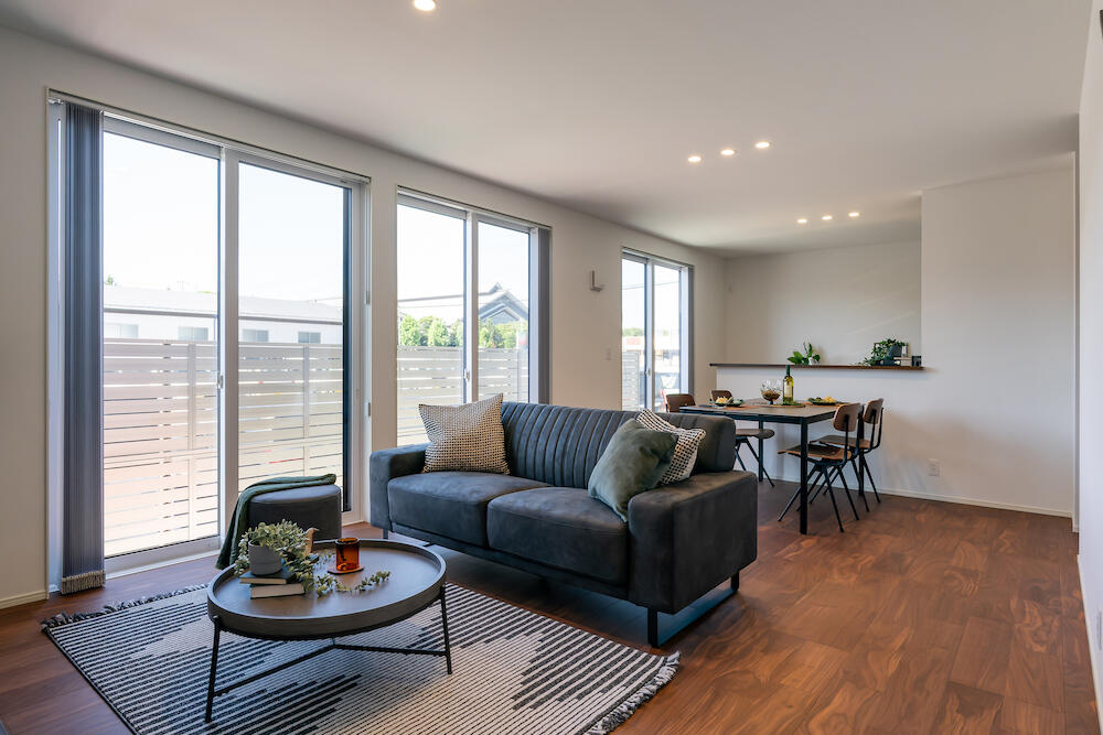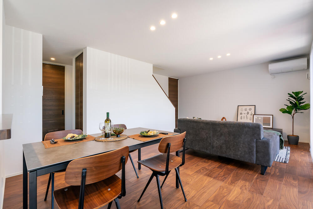 家族も友人もみんなでくつろげるダウンフロアリビング。