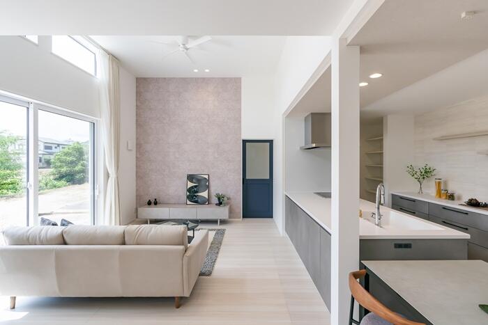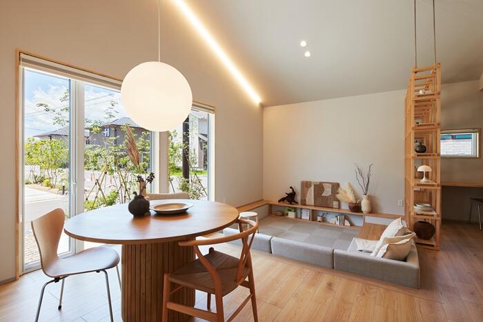 開放感たっぷりの高天井のLDKと使い道いっぱいのタタミコーナー。