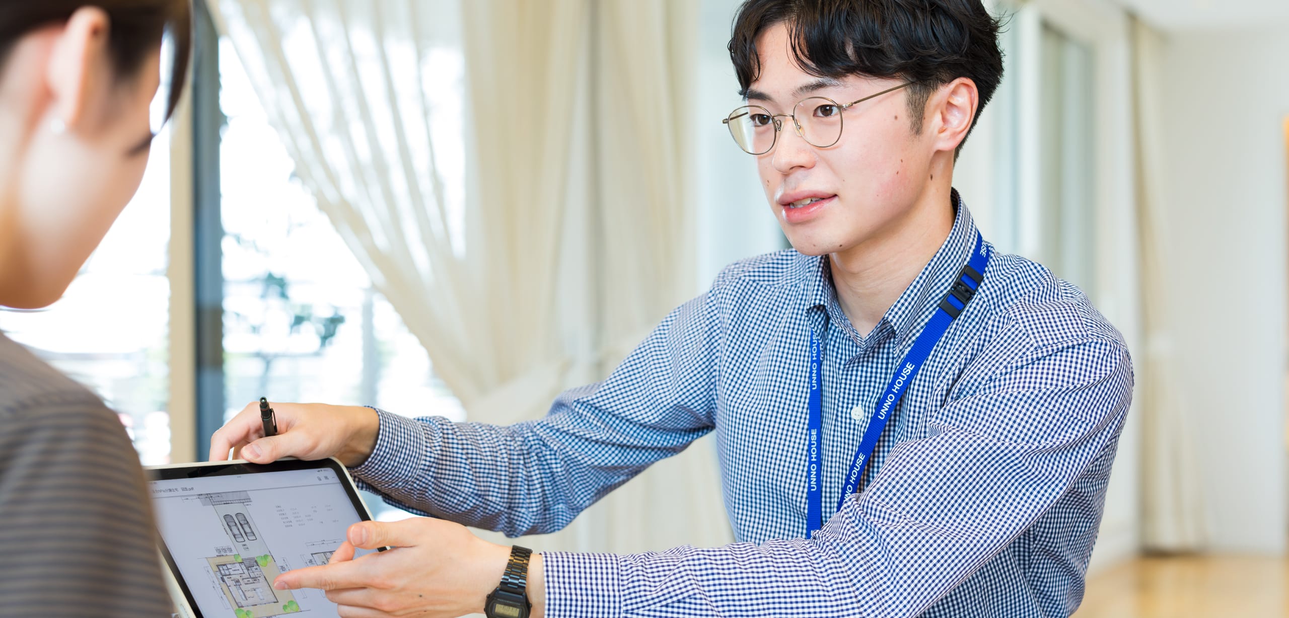 何より魅力を感じたのは、ウンノハウスの設計士の働き方です。家づくりにおいて、設計士は裏方の仕事ではありますが、ウンノハウスの設計士は、お客様との打ち合わせの初期の段階から参加し、直接ご要望を聞いて、それを図面に反映していきます。それを繰り返してお客様に寄り添う設計士の姿は、まさに自分が思い描いていたものでした。