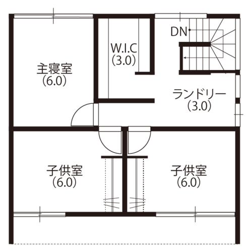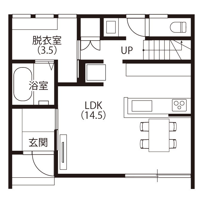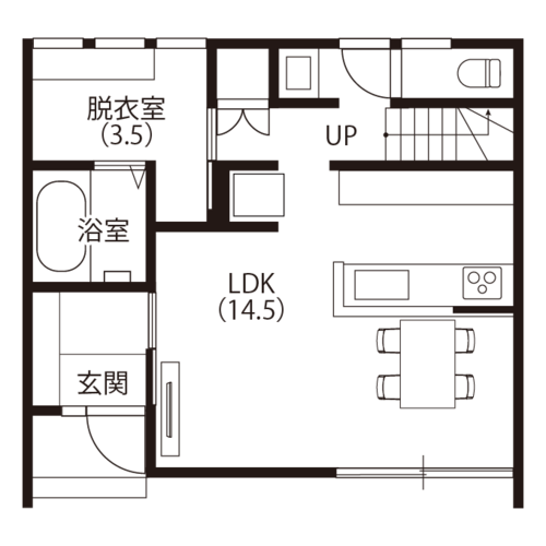 キッチン裏に水廻りをまとめた、使い勝手の良いシンプルな間取り。